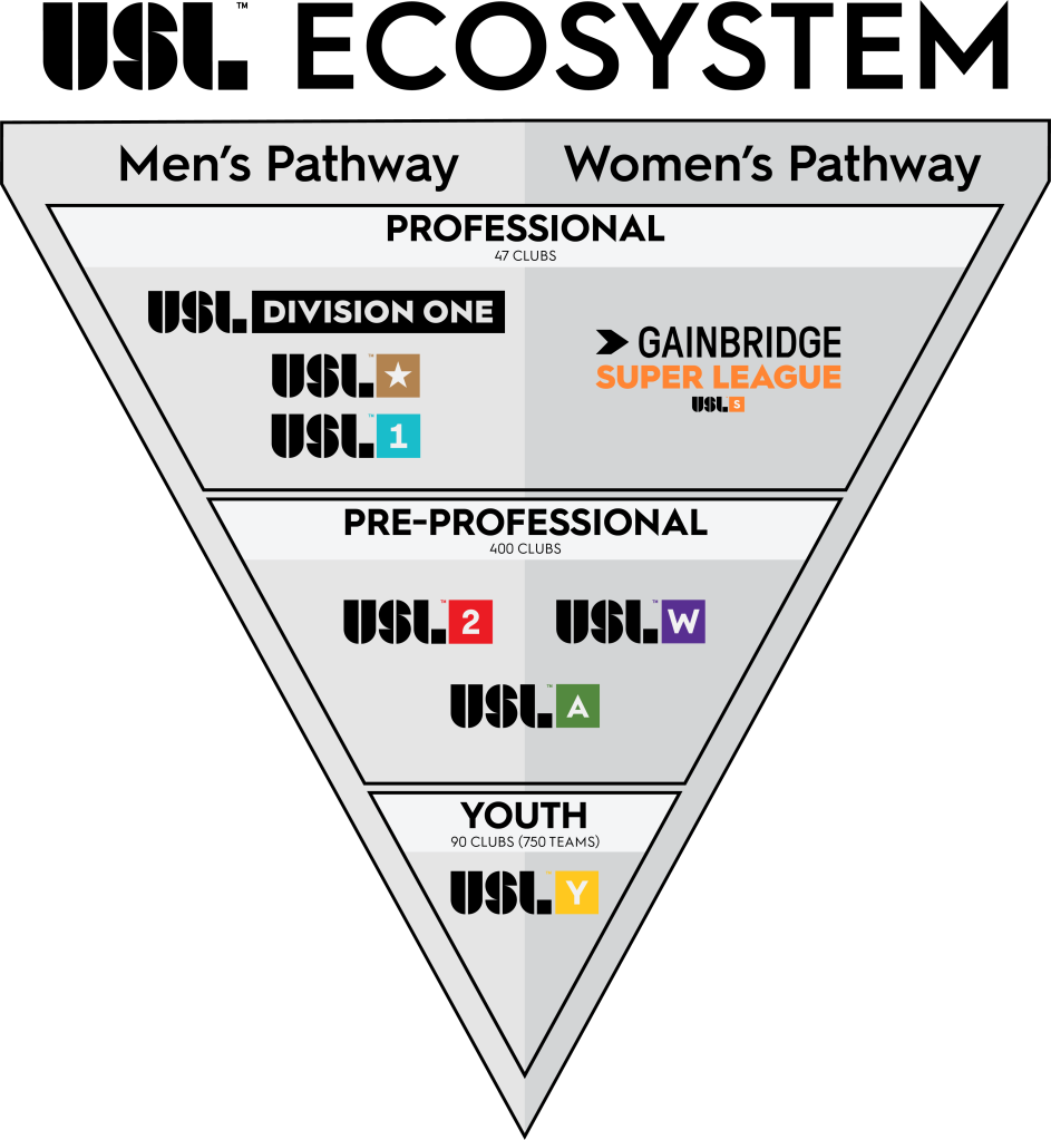The USL is the first and only soccer organization to offer a comprehensive youth-to-professional pathway for both men and women under one ecosystem.